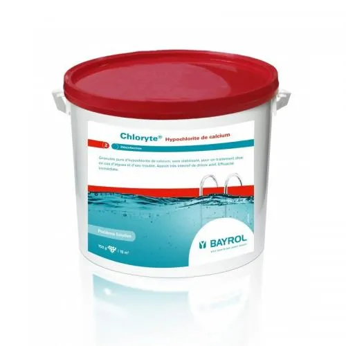 Lire la suite ...Chloryte® est composé de granulés de chlore choc non stabilisé. Il agit en traitement curatif pour éradiquer rapidement les problèmes d'eau. Il ne contient pas de stabilisant de chlore et évite donc les risques de sur-stabilisation du bassin.